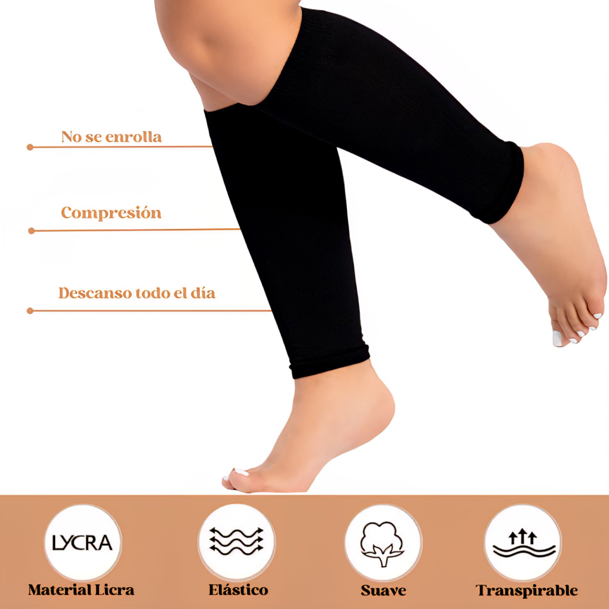 Reducción de la hinchazón (edema): Ideales para personas que pasan muchas horas de pie o sentadas, ya que reducen la retención de líquidos y la inflamación en tobillos y pantorrillas.